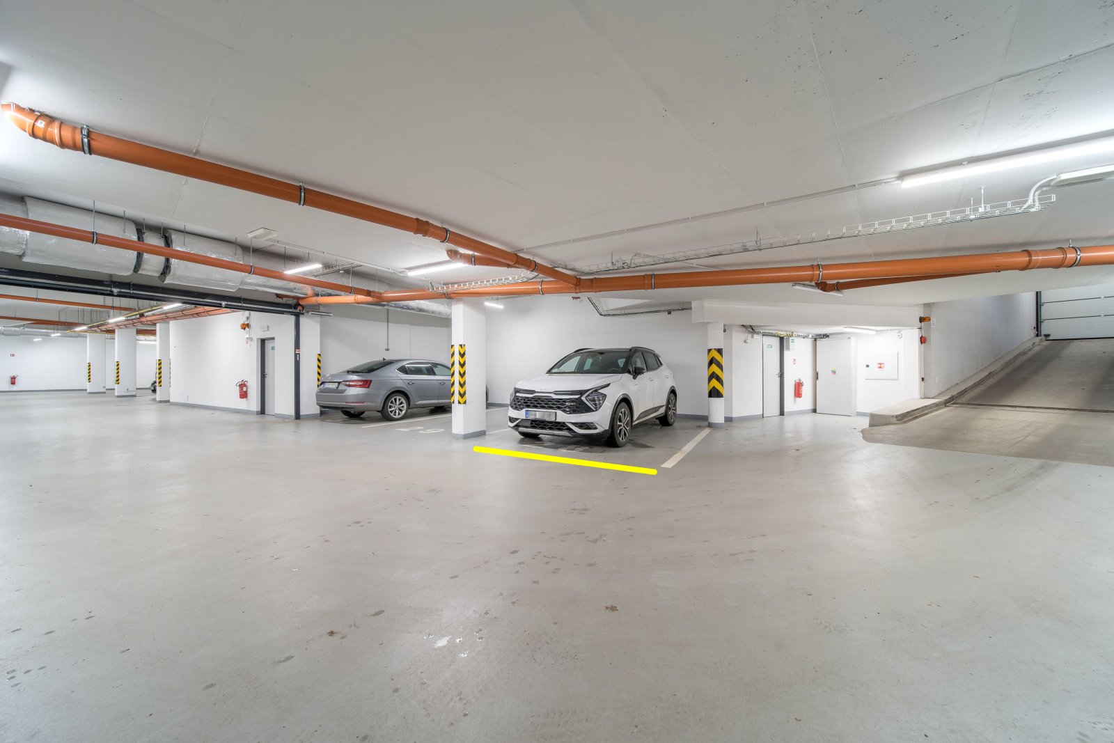 samostatné kryté parkovací stání v suterénu bytového domu.