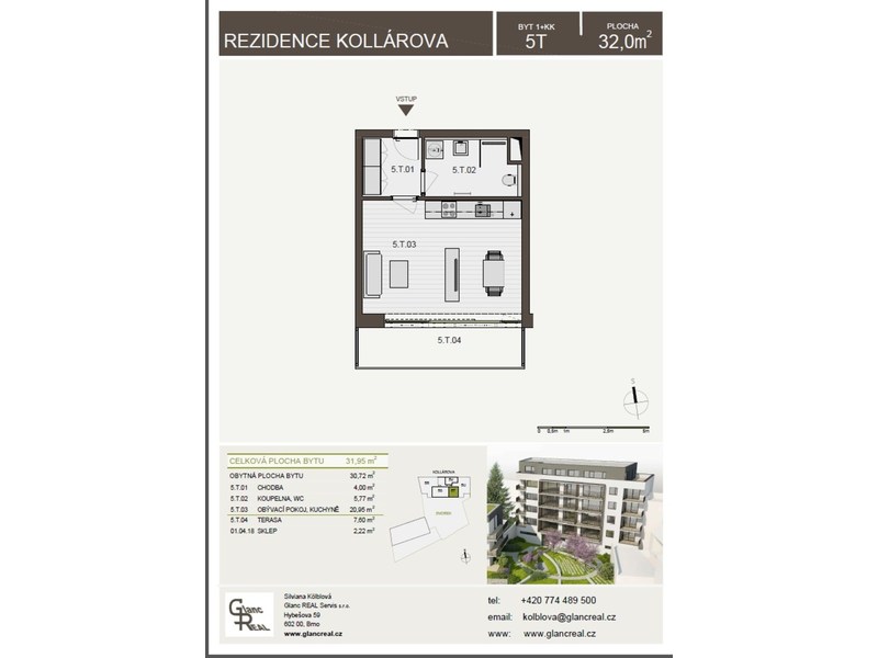 na ul.Kollárova. Byt o celkové ploše 31 m2 a terasa 8m2 se nachází