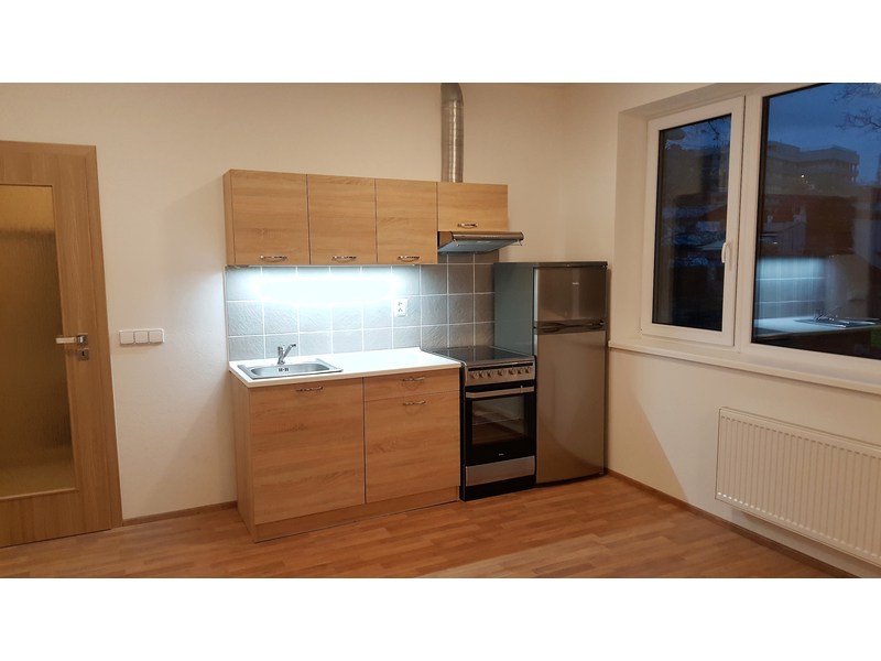 Dispozice: předsíň 3,46 m2, koupelna se sprchovým koutem, umyvadlem, WC 3,88 m2, pokoj s kuchyňským koutem 17,74 m2. Bytová jednotka se nabízí částečně zařízená, kuchyňská linka vč. spotřebičů, lednice, pračka, v předsíni šatní skříň. Po dohodě s majitelem je možné byt dovybavit..